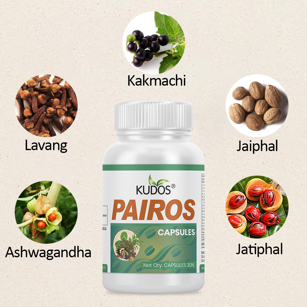 Pairos capsules are a traditional herbal remedy used to enhance blood circulation and revitalize neurons, which can be beneficial in paralysis management. Paralysis is a condition that results in a loss of muscle function due to damage to the brain or nervous system.